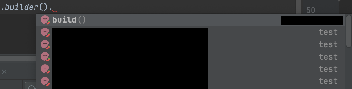 builderClassName을 test로 설정 시 아래와 같이 필드를 설정하는 메서드의 반환 값이 test가 된다.