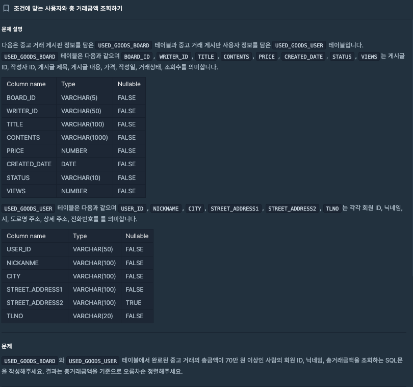 # SELECT USER_ID, NICKNAME, SUM(PRICE) AS TOTAL_SALES