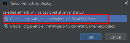 📌 build.gradle.kts 에 id("war") 를 추가하지 않았다면 아티팩트가 나타나지 않음