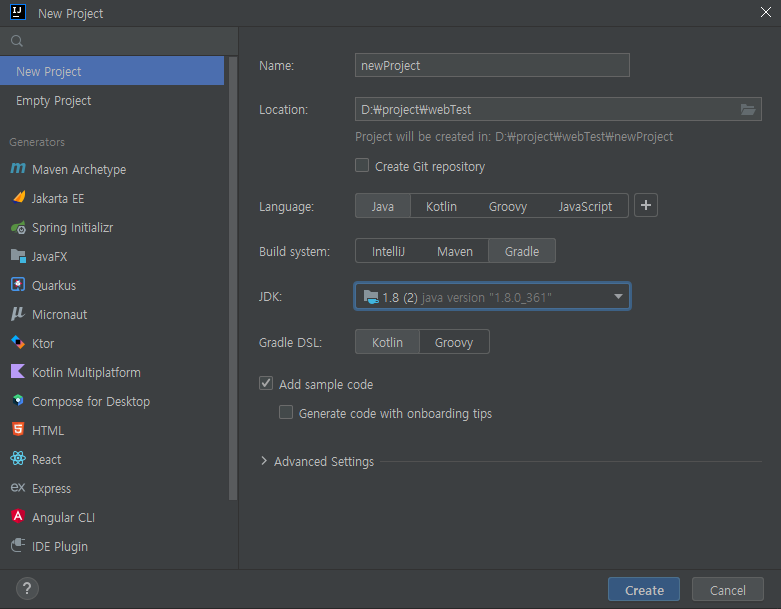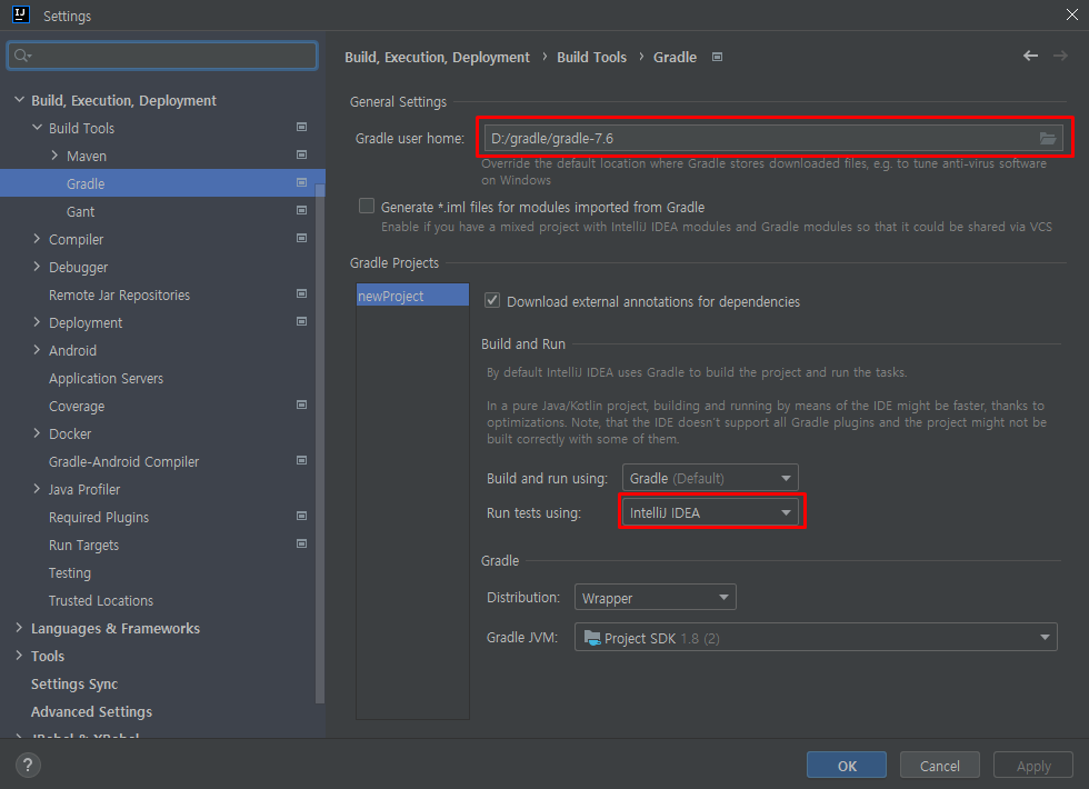 - Gradle user home : 사용하는 Gradle 버전 불러오기